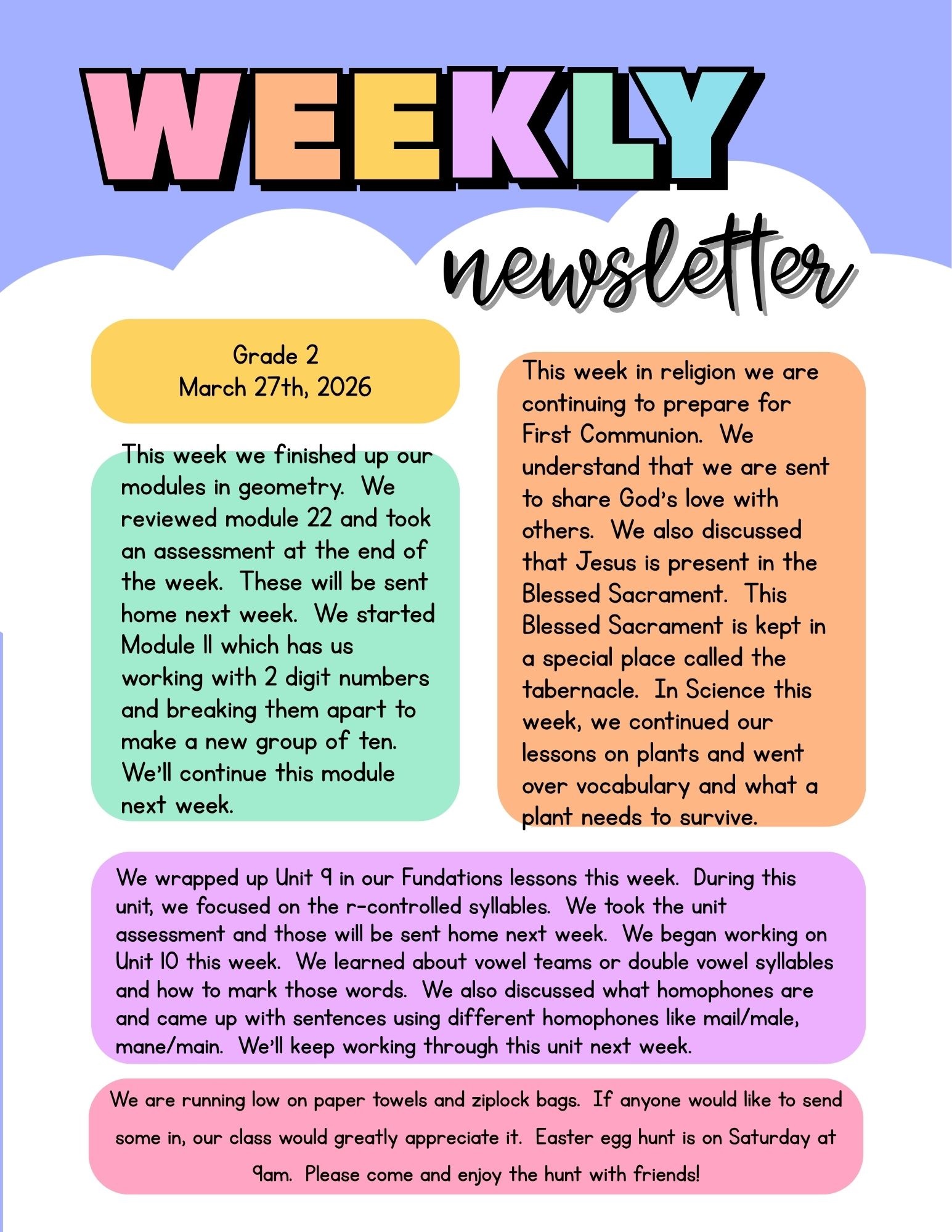 2nd Grade Scoop-March 27th, 2026