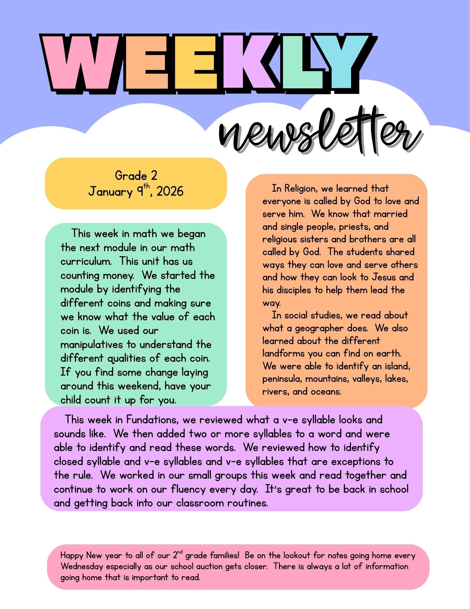 2nd grade scoop-January 9th, 2026