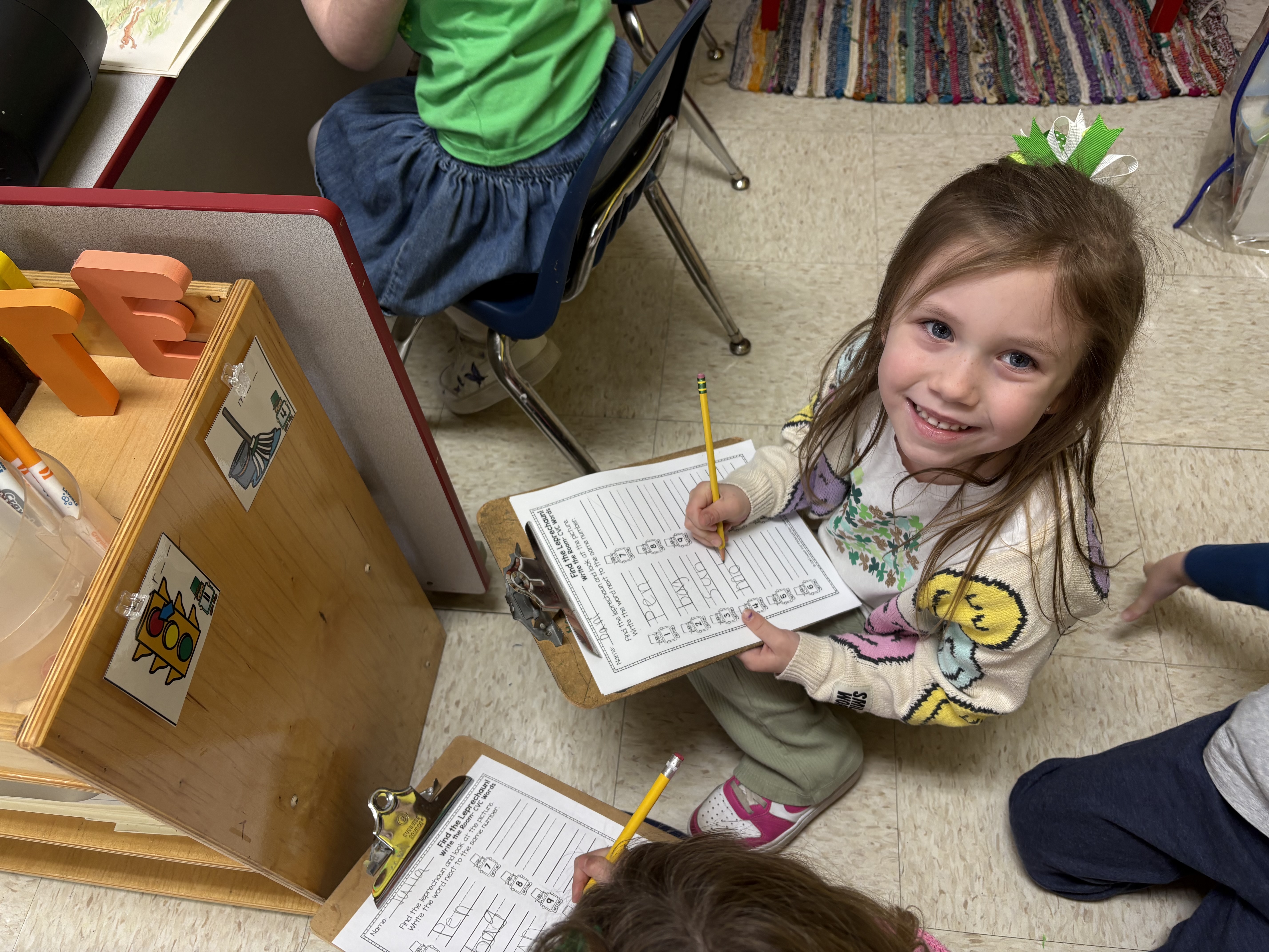 05MarMarch PicturesK Pictures0 New spring flashlight pointers! Mr. Fix it! Happy Birthday, Dr. Seuss! Read, read, read a book, we read all the time! We love books by Dr. Seuss, we love the way they rhyme! Seuss Bingo time! Seuss memory time! Seuss write the room! Dropping off jelly! Mystery reader! Food pantry visit Writing notes for friends! Notes for friends! Art center fun! Check out our magnatile creation! Counting while ‘crossing the midline’ with bean bags Look what we built together! read and reveal! Word wall practice! Word work time! All about digraphs! We love reading our class books Elephant and Piggie books are the best! Easter egg painting! Watching the March Madness shootout competition! Birthday girl! buddy reading with friends Look what we made together!