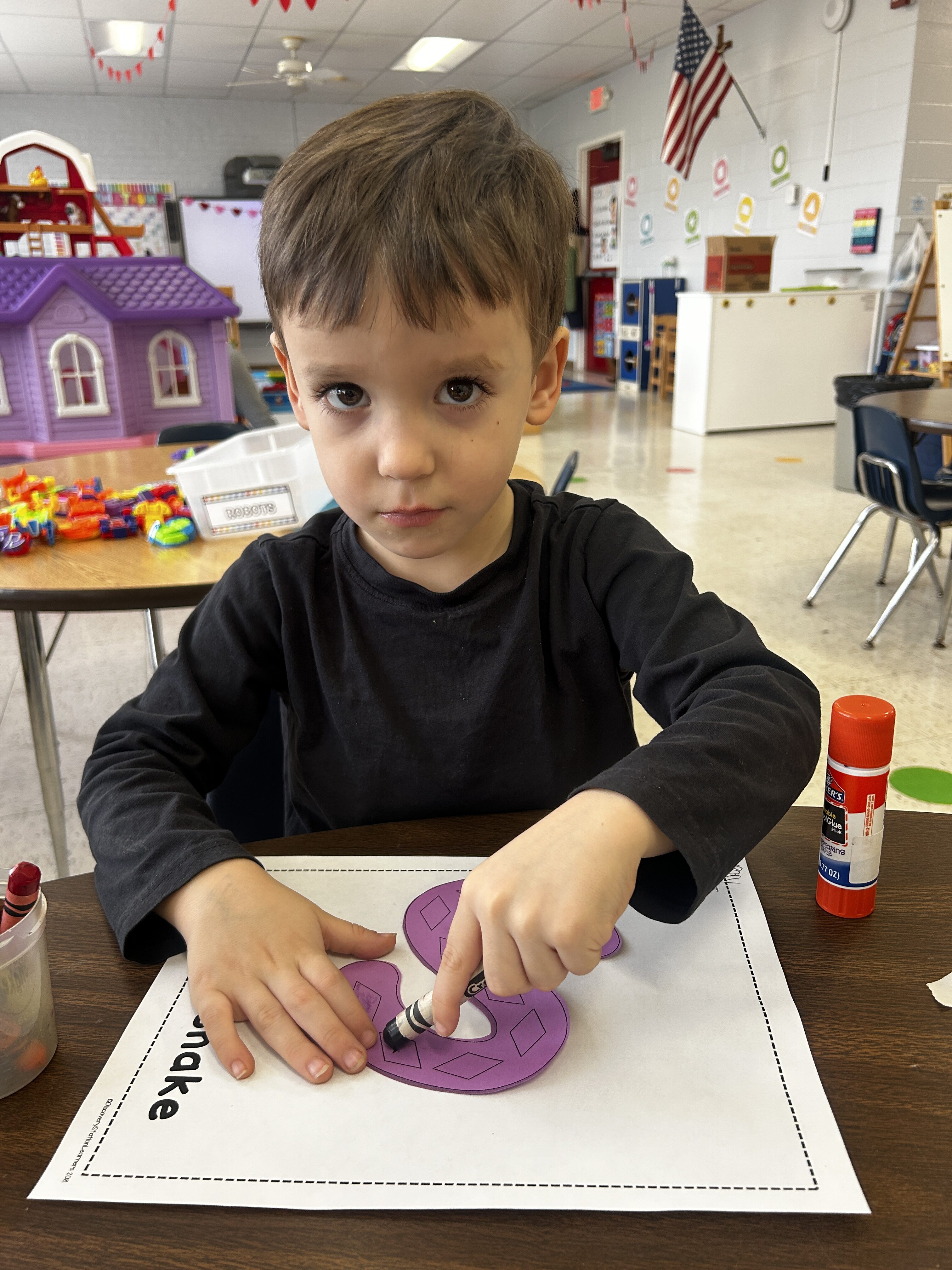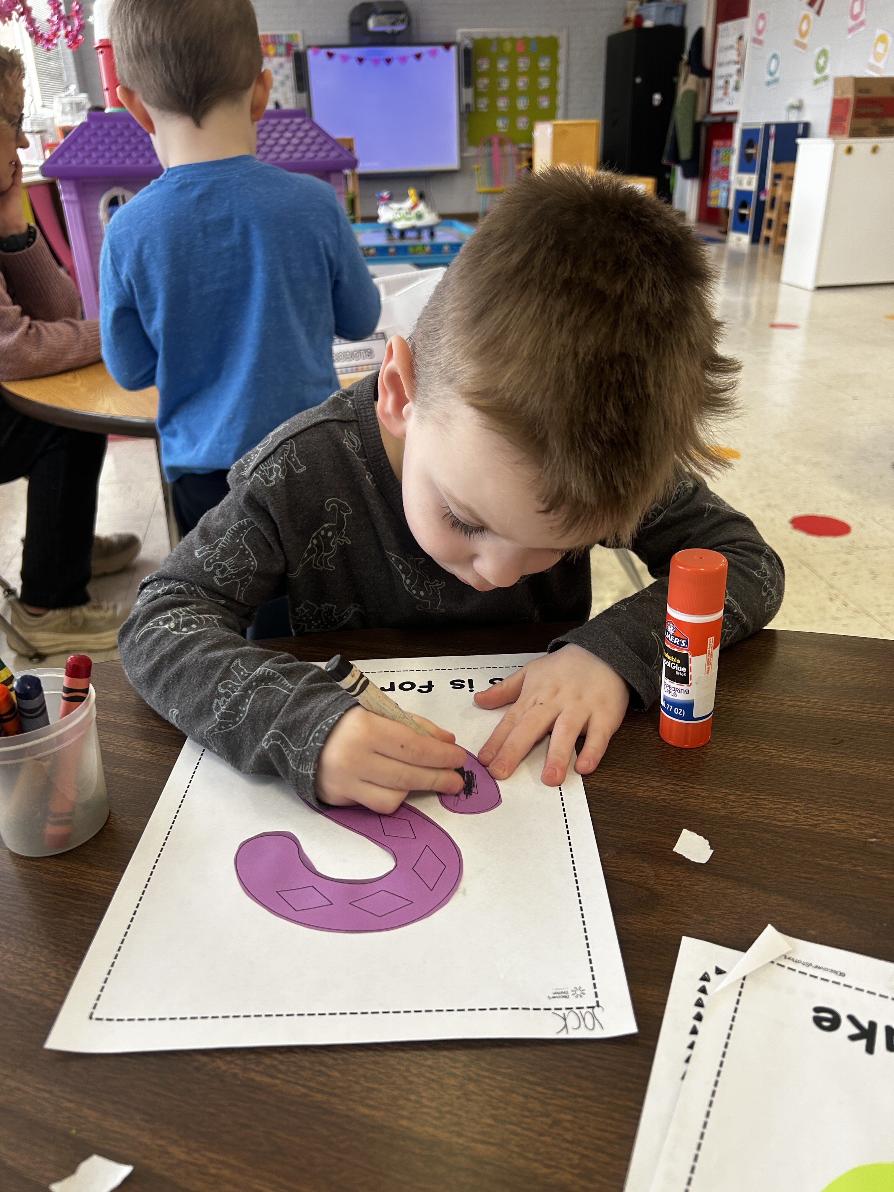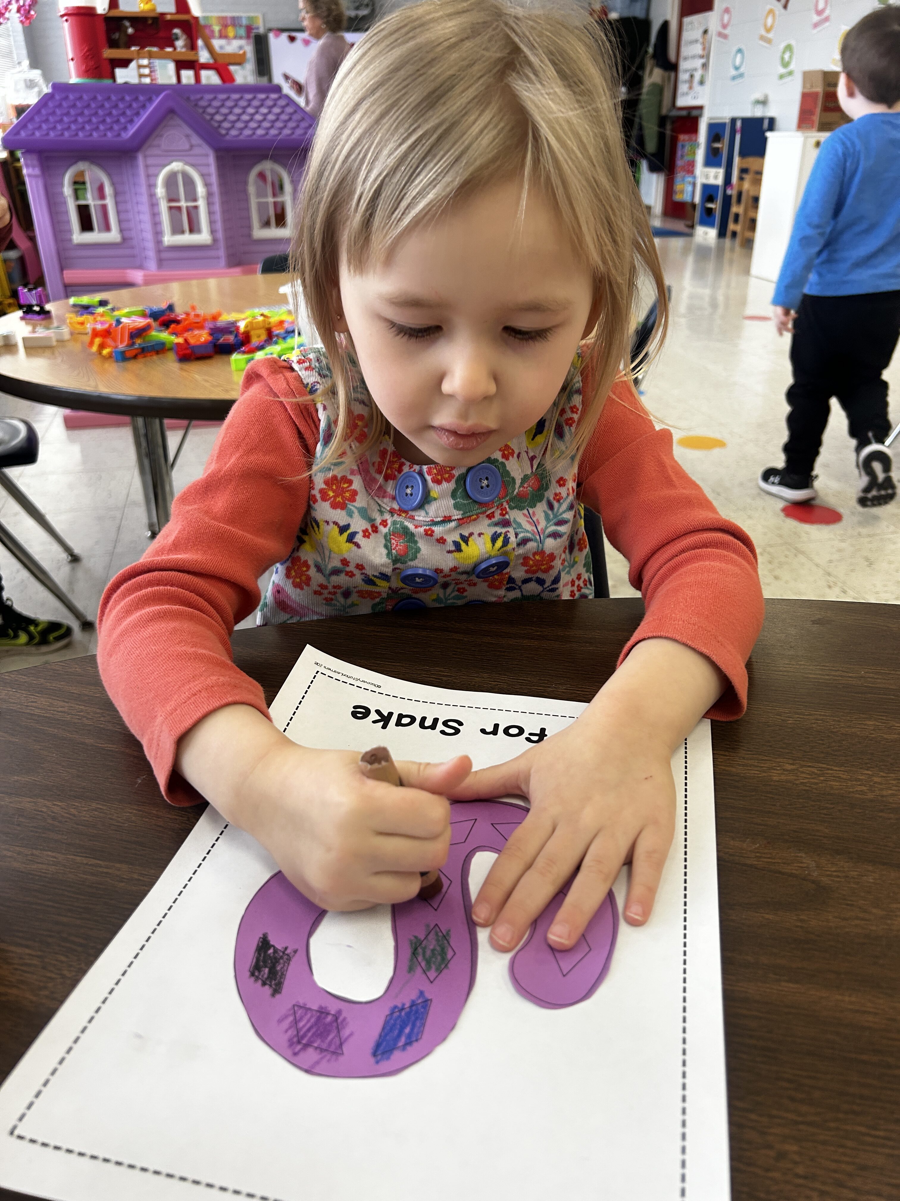 *S was our Letter of the Week. We slithered like snakes and made an S for Snake craft at the teacher center!