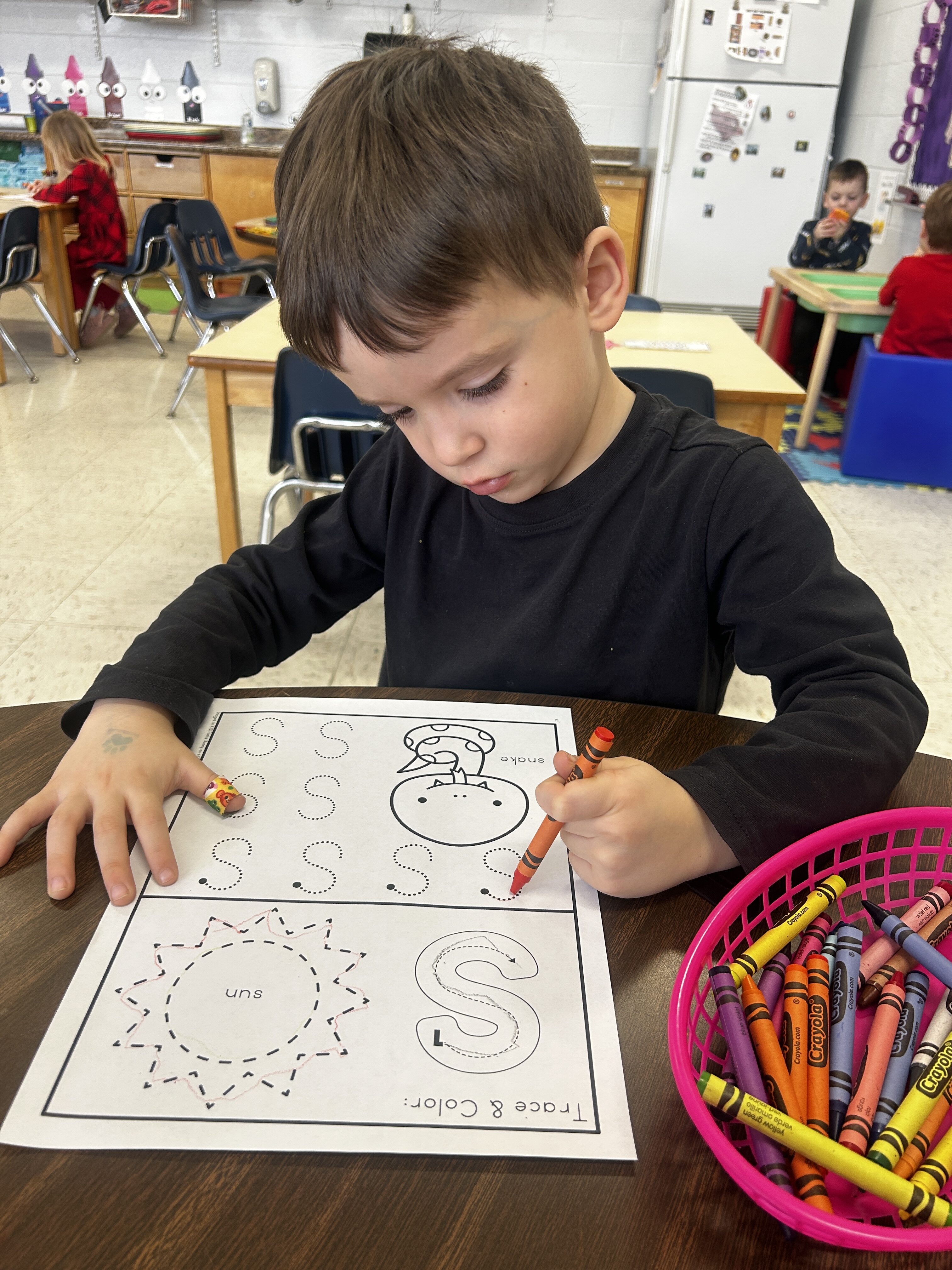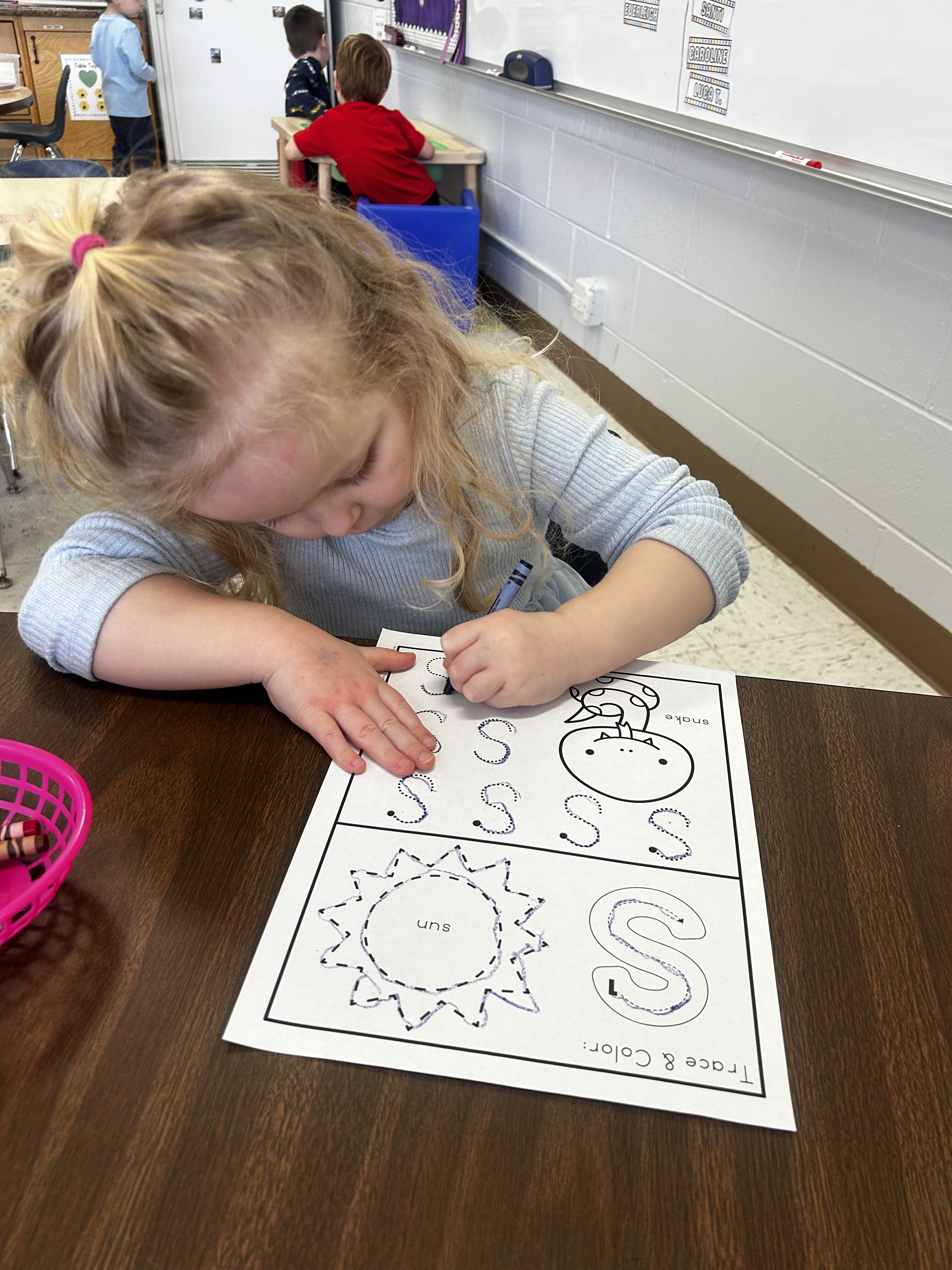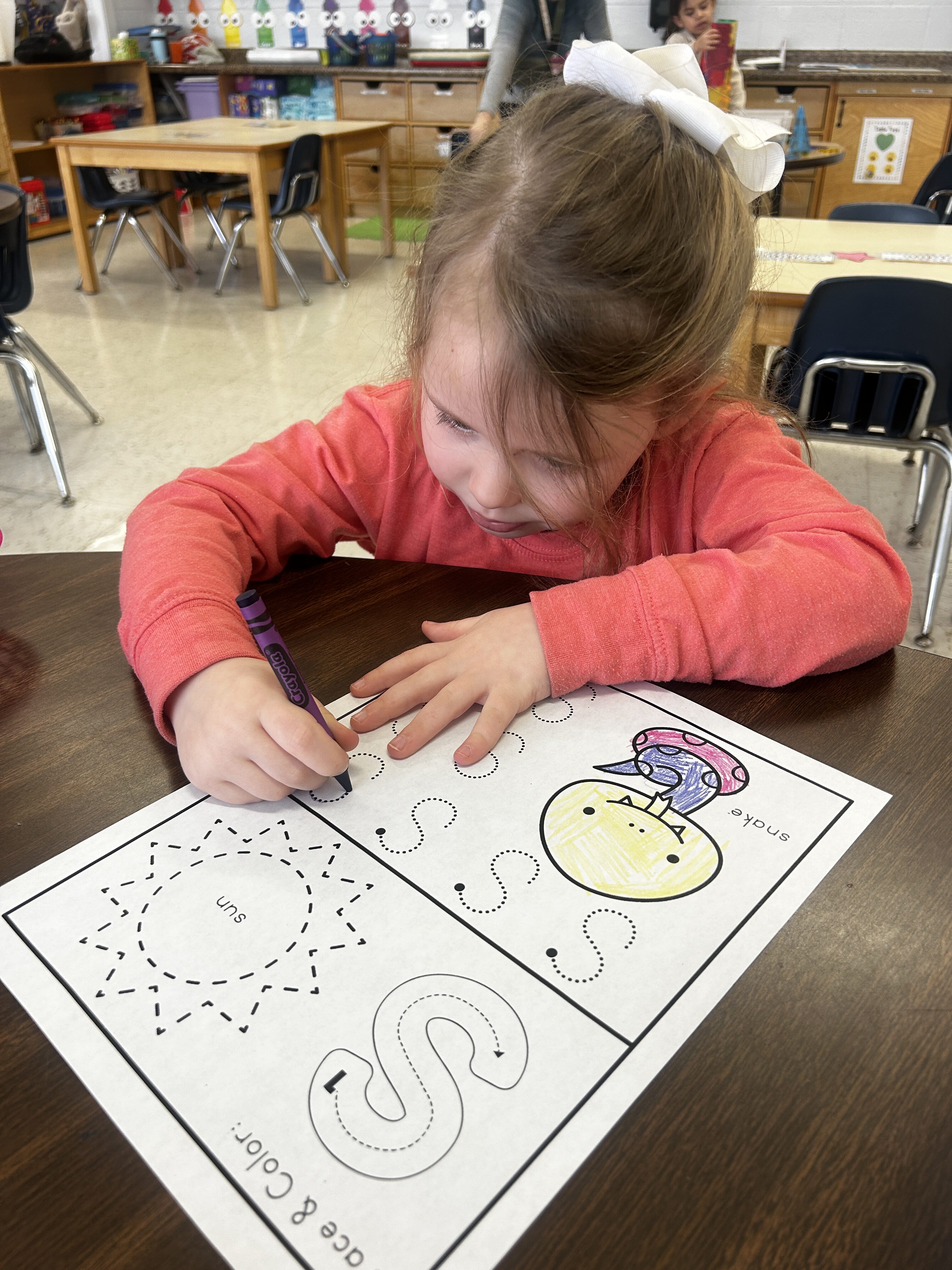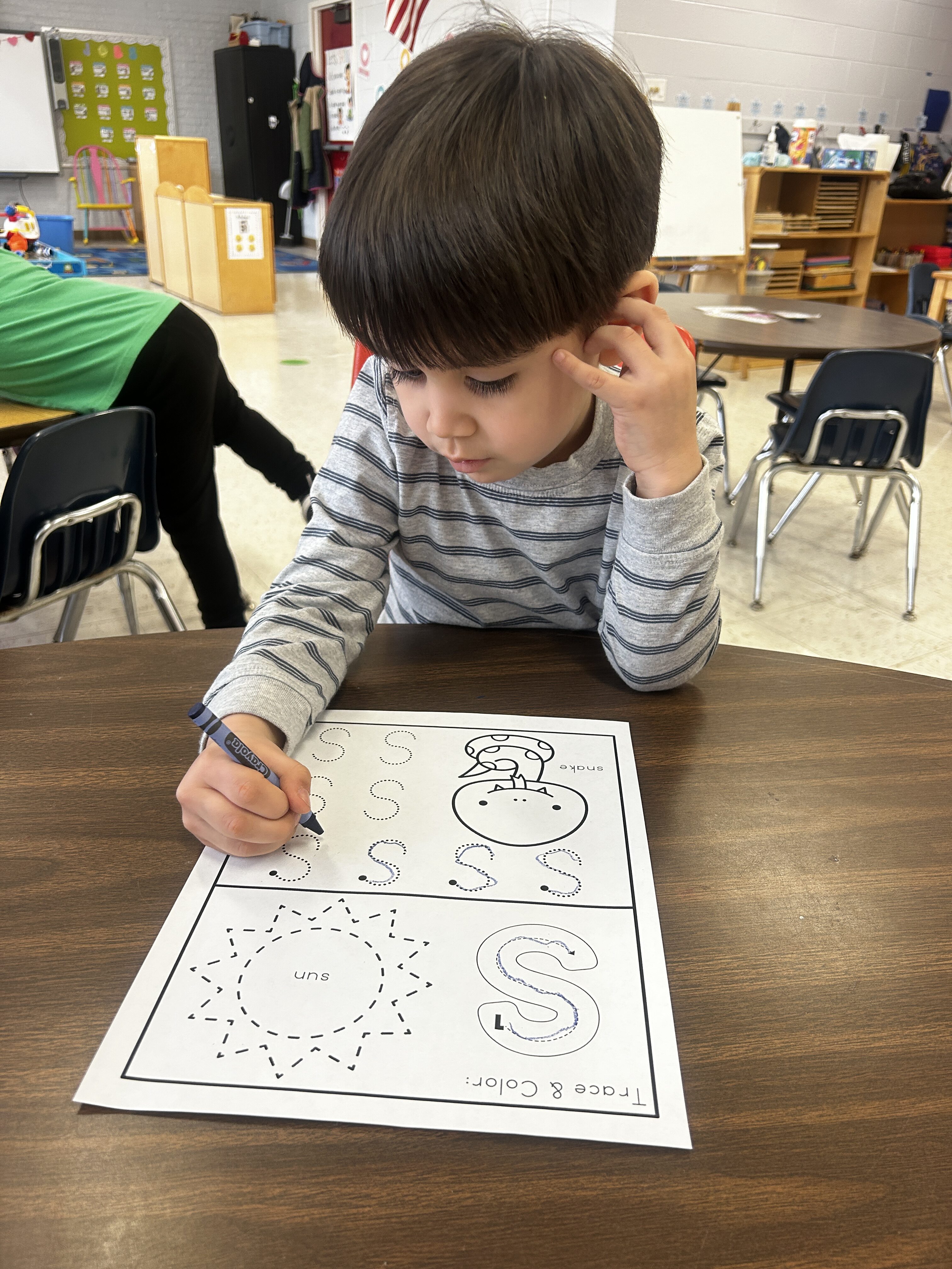 *S was our Letter of the Week. We slithered like snakes and made an S for Snake craft at the teacher center!
