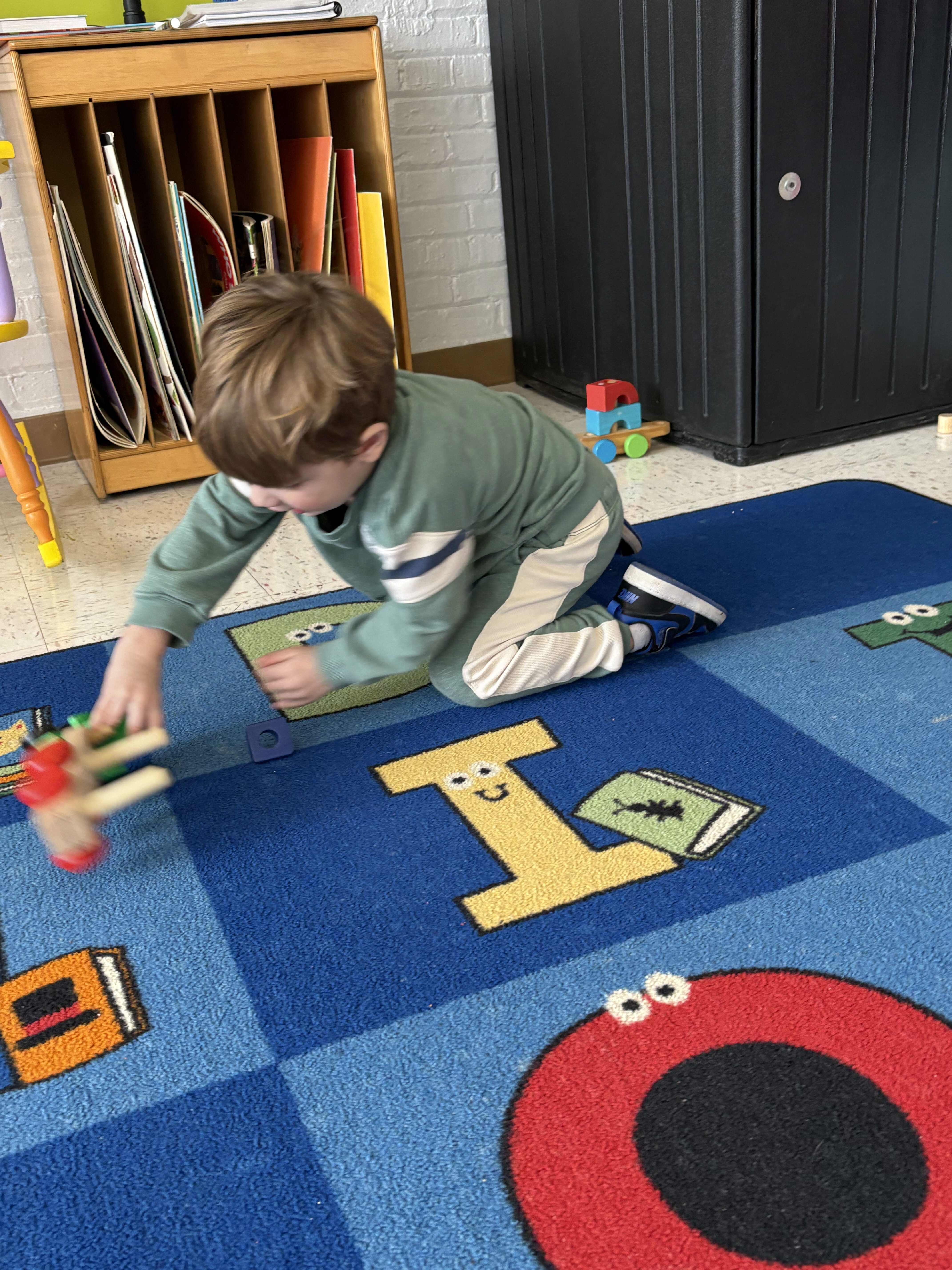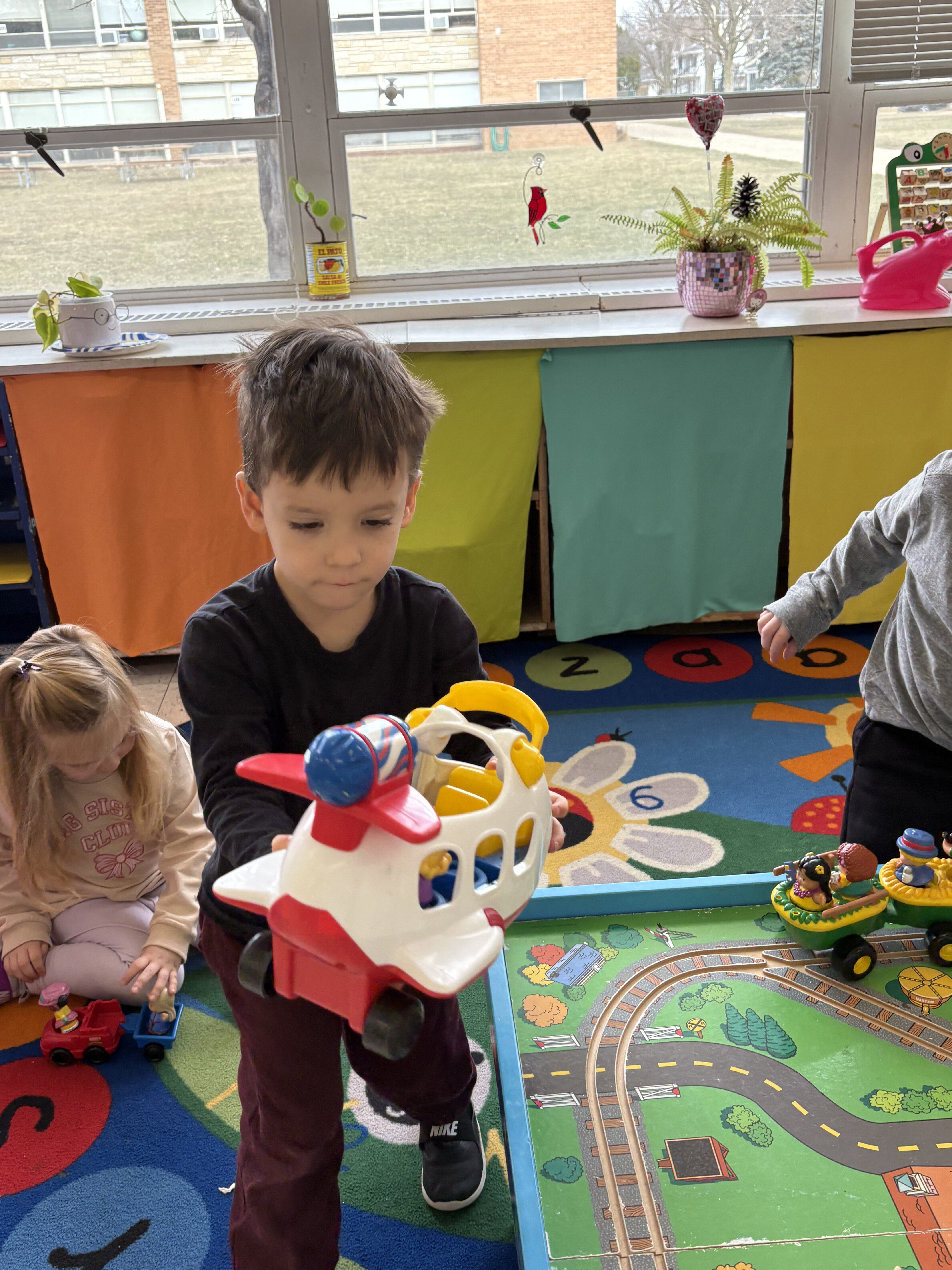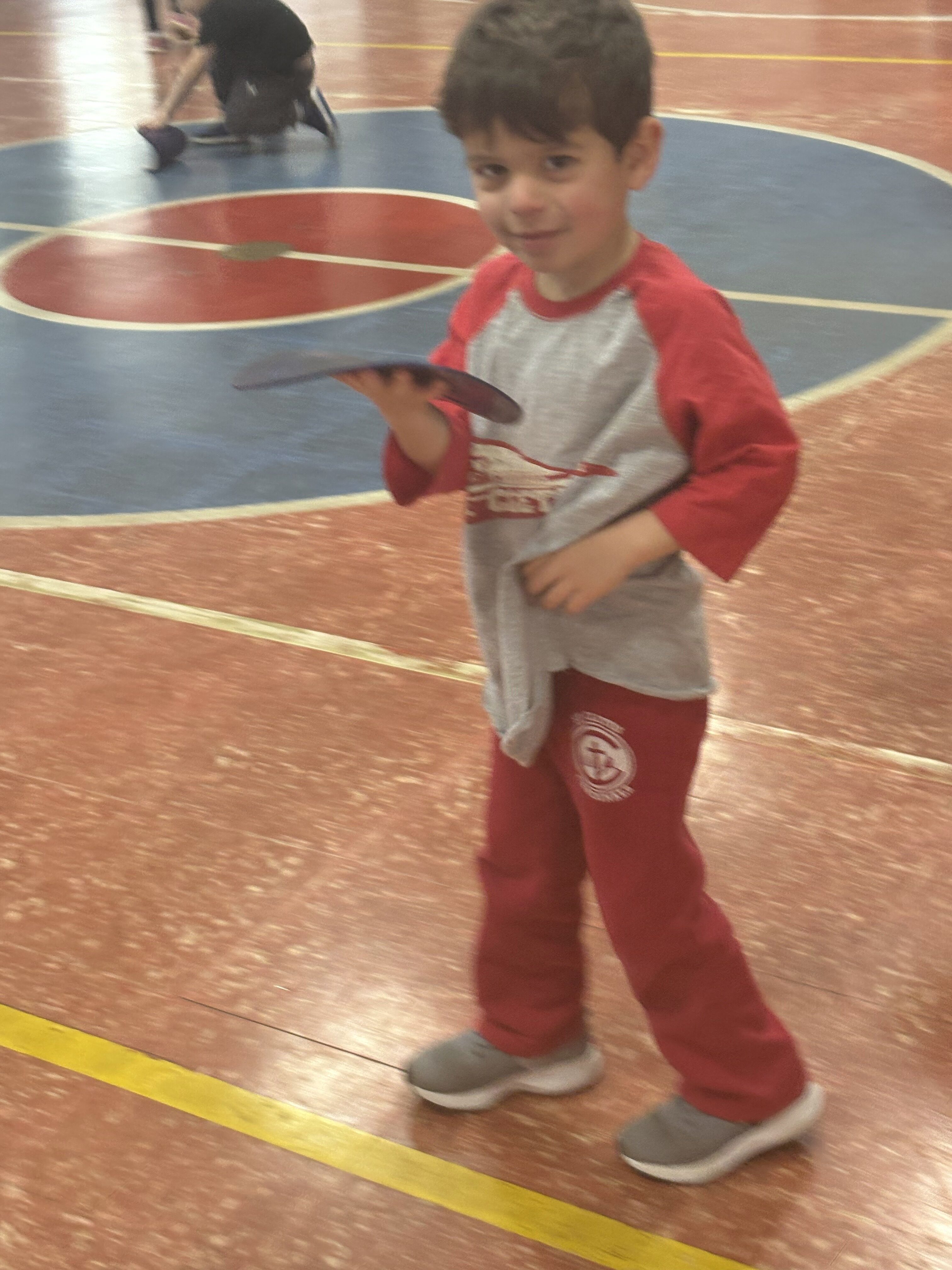 *We completed an obstacle course in P.E.! We learned how to walk on a balance beam with our arms out like an airplane!