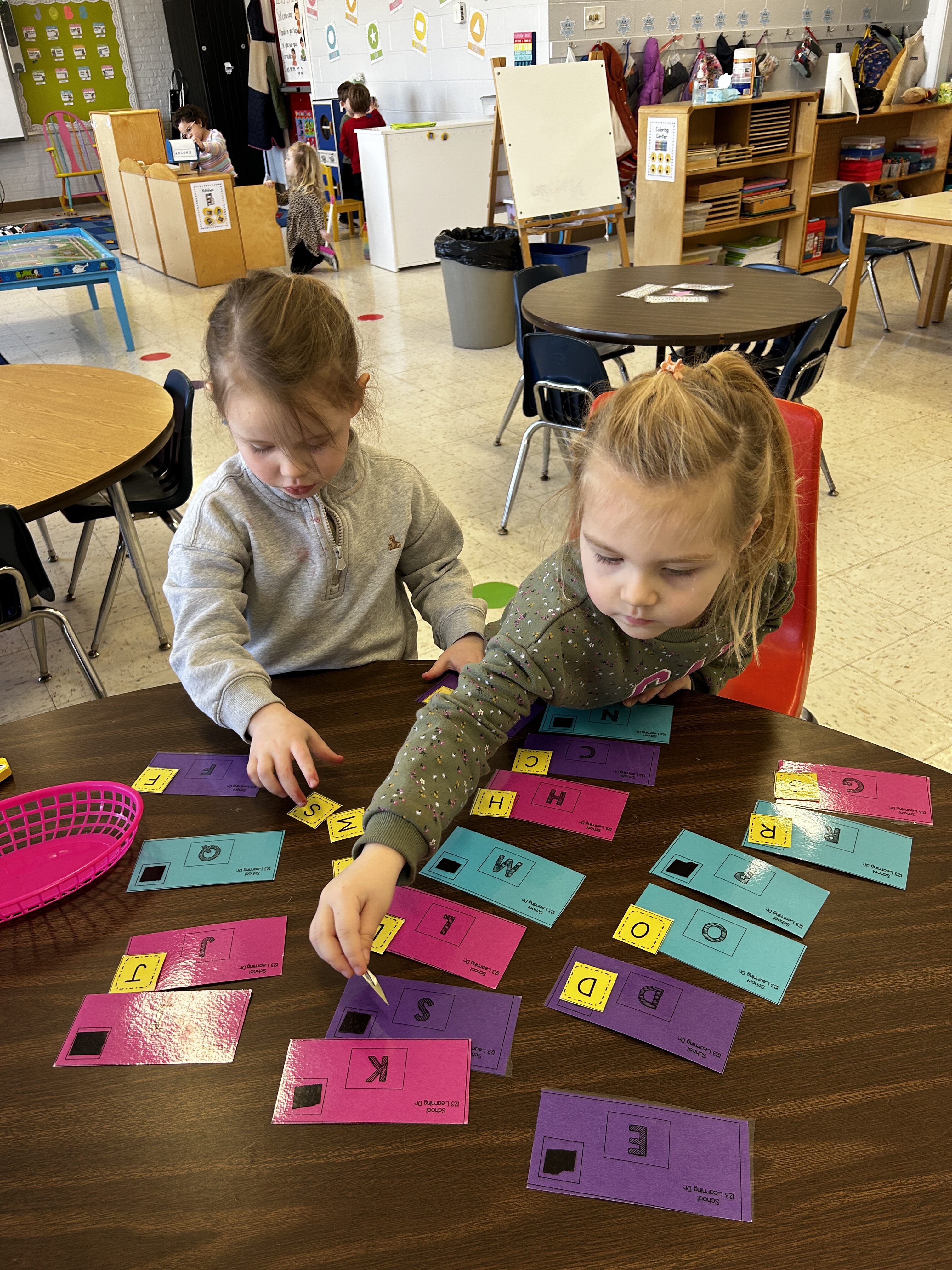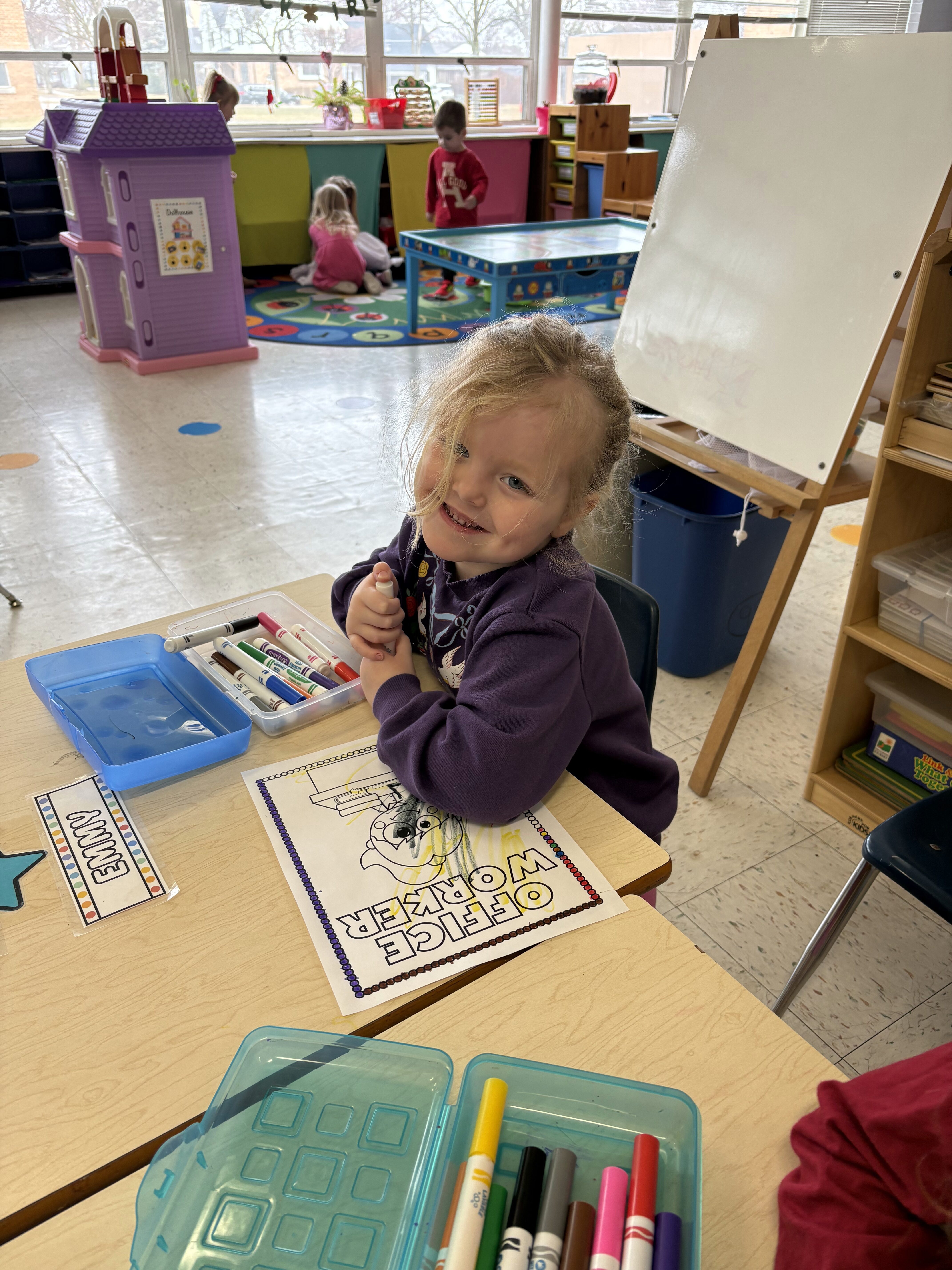 *We pretended to be veterinarians, bank tellers, and mail carriers. They loved caring for stuffed animals at our “vet clinic,” helping customers at the “bank,” and delivering mail around the classroom.